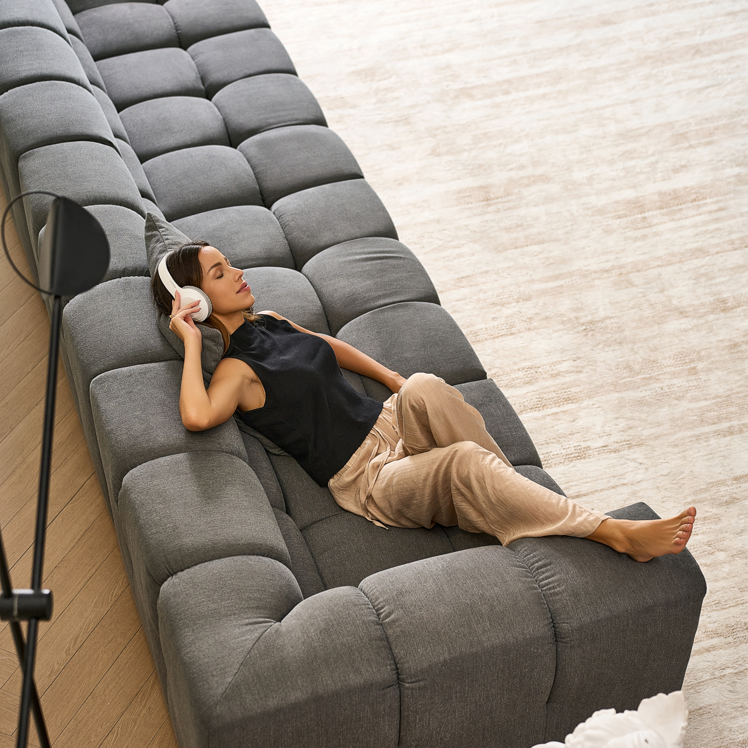 I've crafted The Amora collection with your ultimate relaxation in mind. Making it perfect for lounging from any angle. Whether you're sitting upright, kicking back, or spreading out, lay your head on the armrest because every detail is thoughtfully designed.