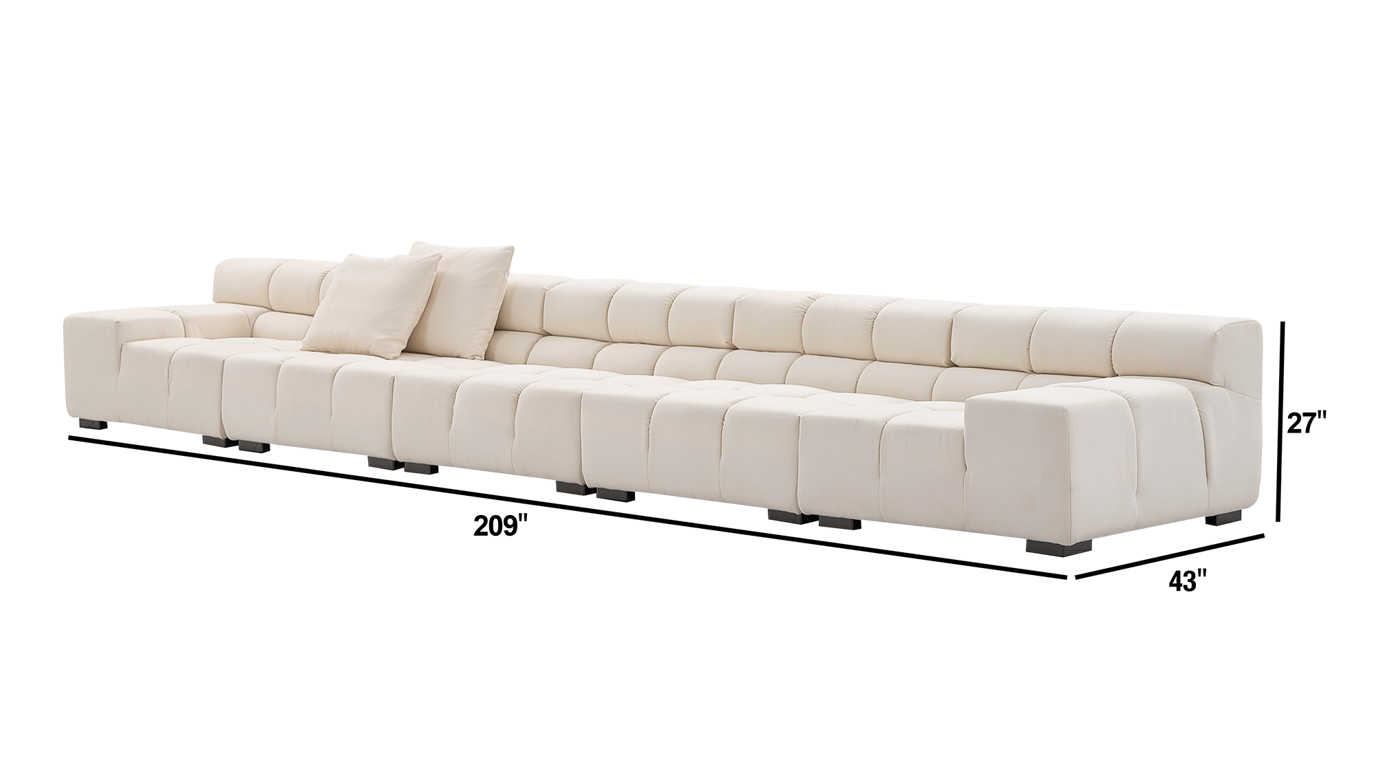 Please note that due to the artisanal nature of our sofas, there may be slight variations in size and dimensions.