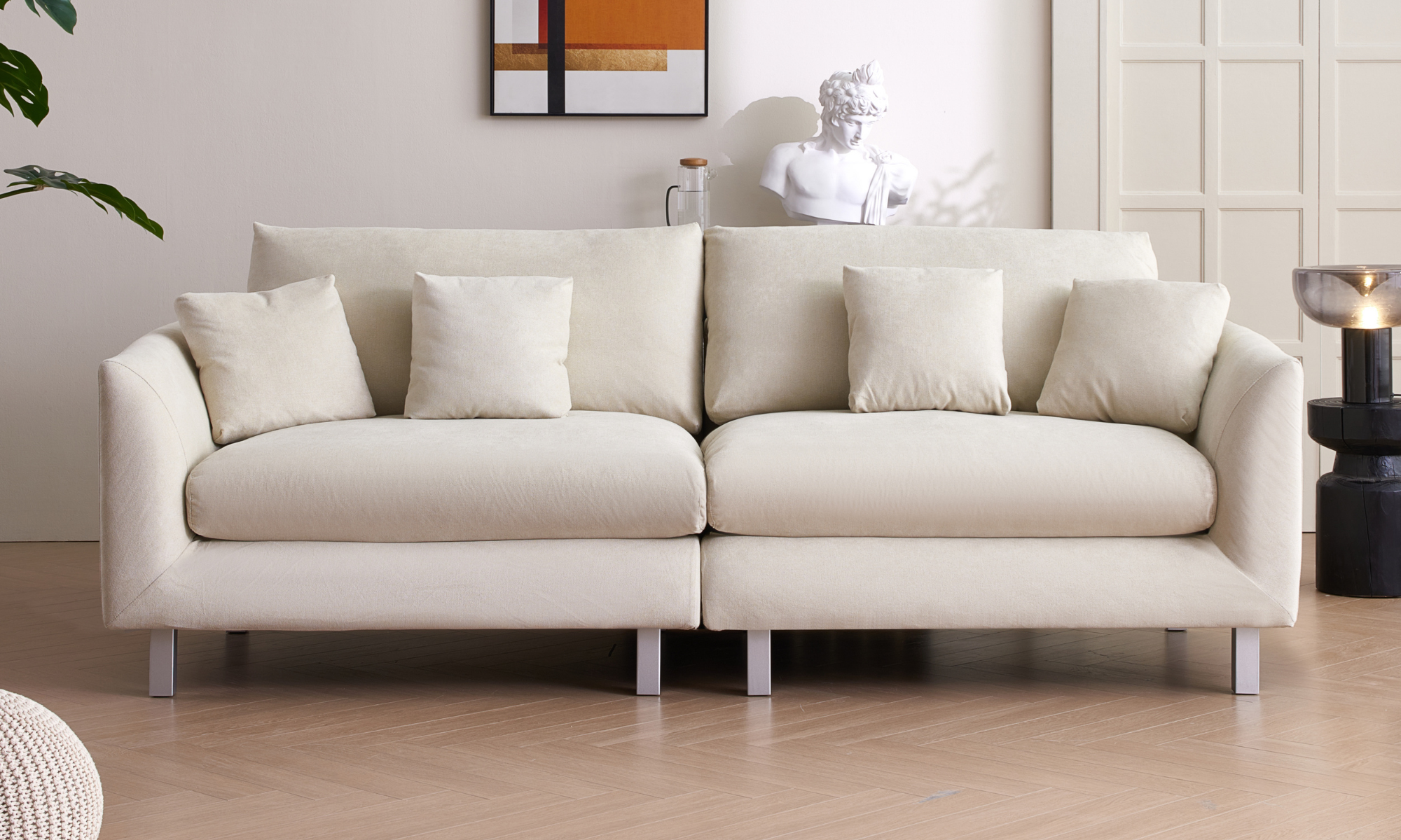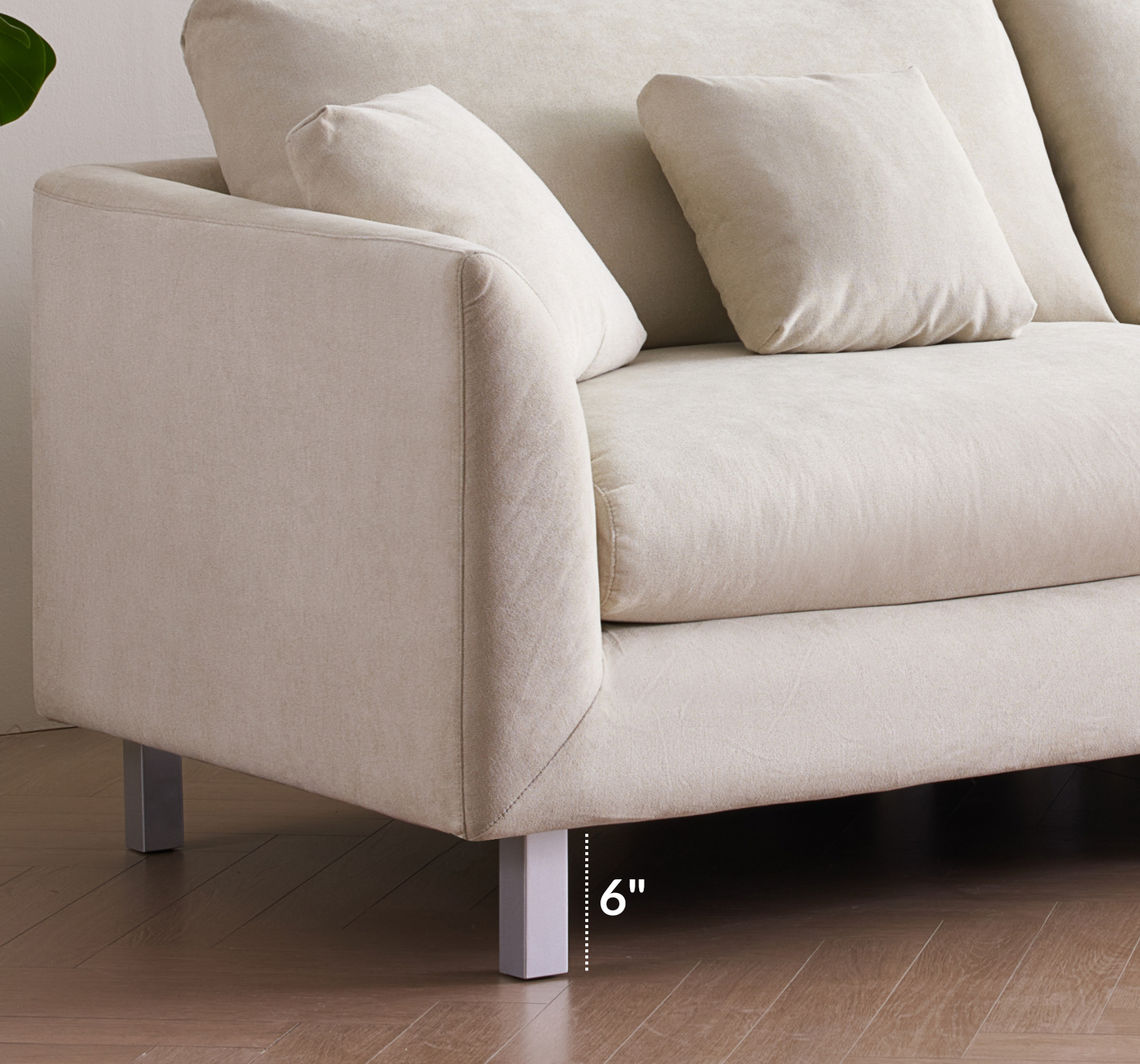 Elevate the elegance of your Feathers Sofa effortlessly - not tools required. Simply attach the 6" couch legs with a simple twist to lock them in place, and voila, your sofa transformation is complete. Ideal for refreshing your space with ease and sophistication.