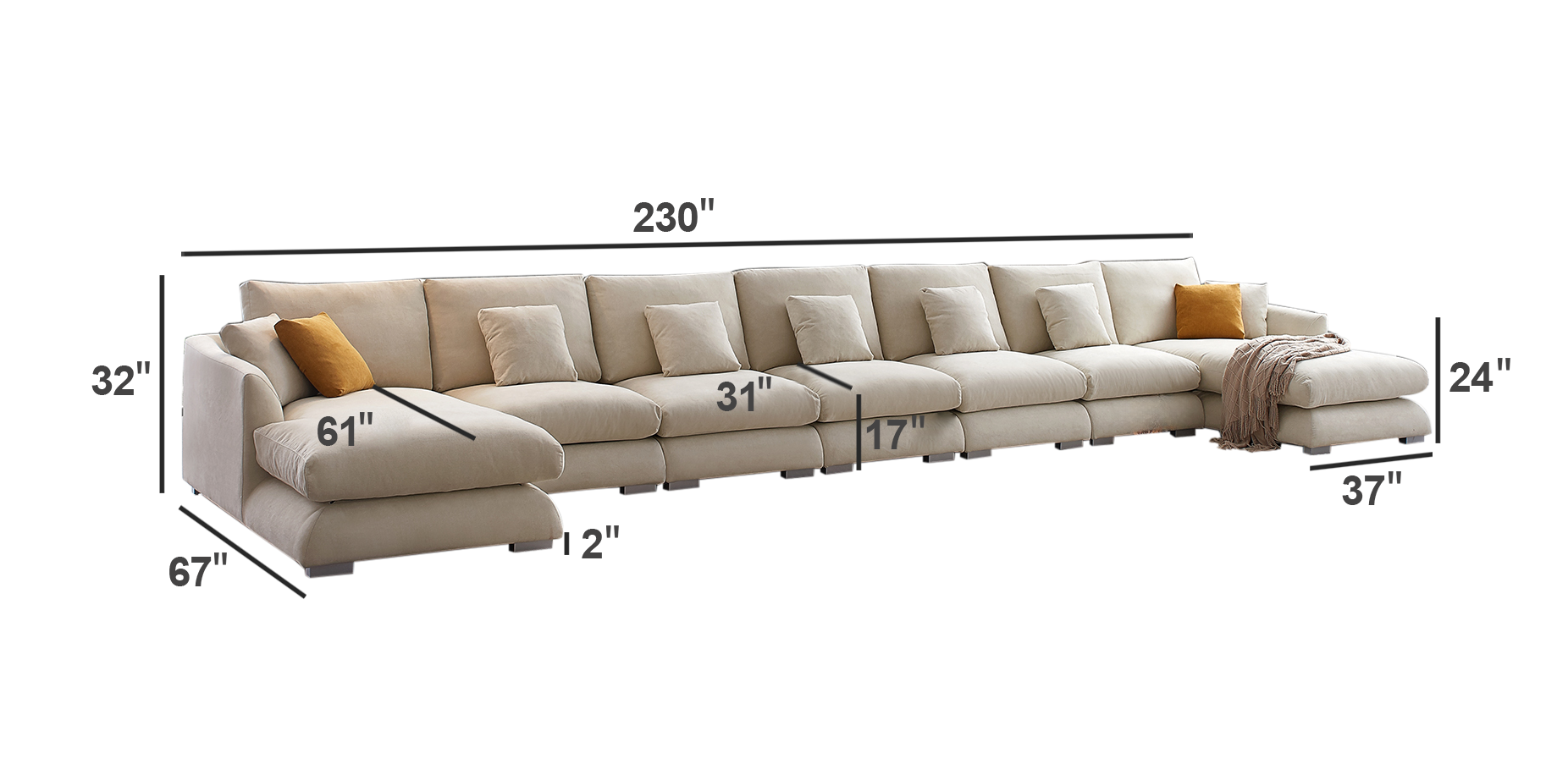 Feathers collection have 10mm Dubetina, a soft and smooth cotton, providing extra layer of support. Its breathability and moisture wicking properties help to keep the sofa cool and dry. Additionally, the fabric is durable and designed to resist fading, pilling, and wear and tear.